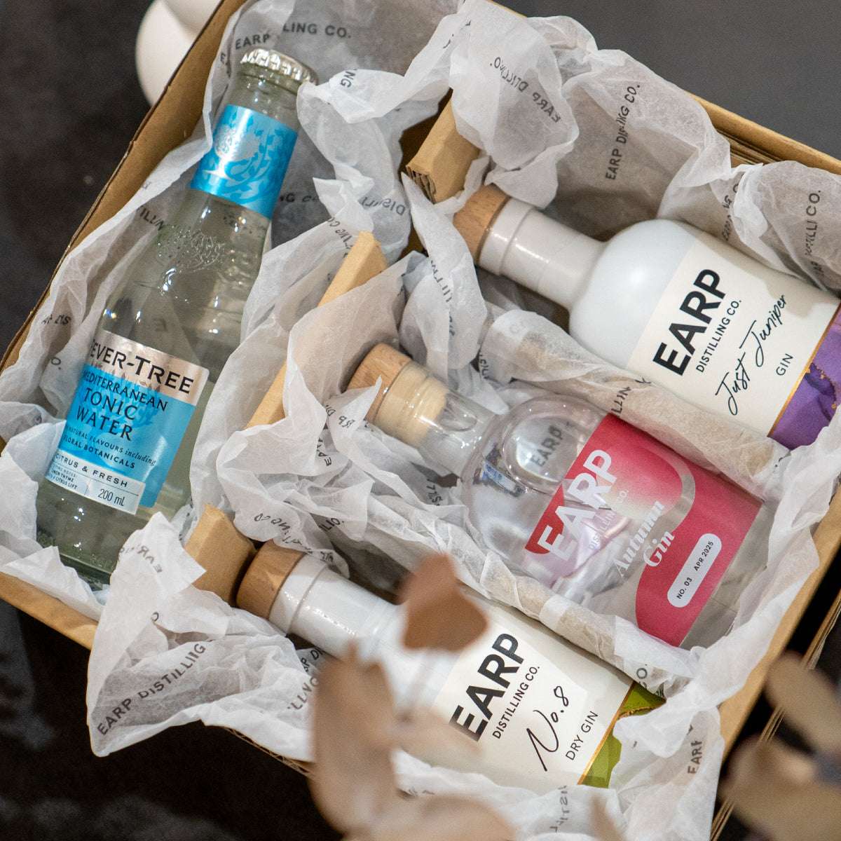 Contains: 200mL Autumn Rhubarb Gin (40% ABV, 6.3 Standard Drinks), 200mL Just Juniper Gin (42% ABV, 6.6 Standard Drinks), 200mL No. 8 Dry Gin (42% ABV, 6.6 Standard Drinks), 200mL Fever-Tree Mediterranean Tonic